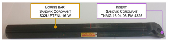 Presented approach was applied to a case study. The active boring bar was designed starting from a commercial boring bar made by Sandvik (S32U-PTFNL16W) equipped with a TNMG160508PM-4325 cutting insert, presented in Figure 9.