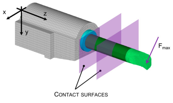 Using the model presented in Section 2.4, interference was estimated for selected preload, based on the equivalent stiffness. Boring bar FE model is shown in Figure 15.