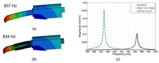 The comparison between the dynamic responses of the different models is shown in terms of tooltip Frequency Response Function (FRF) in Figure 17c.