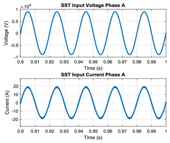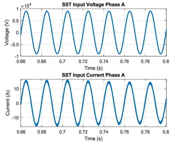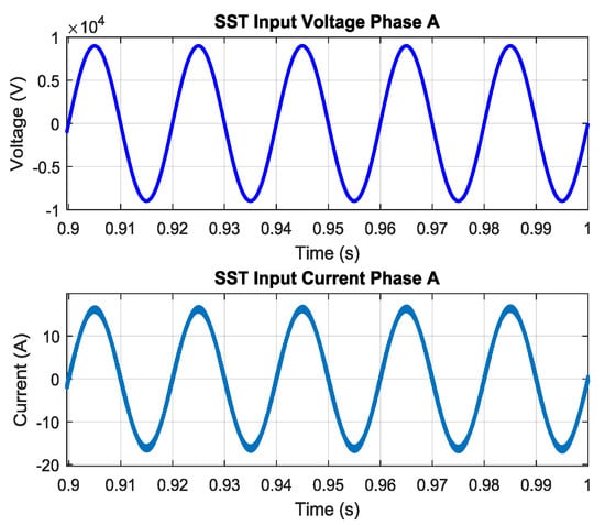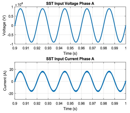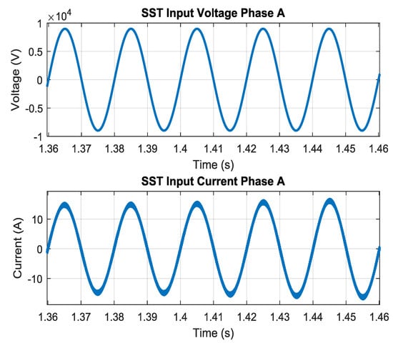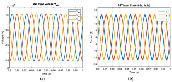 (a) SST input voltage at the grid side. (b) SST input current at the grid side.