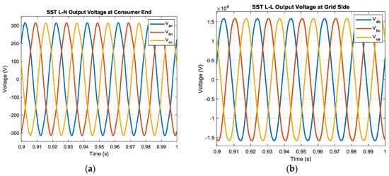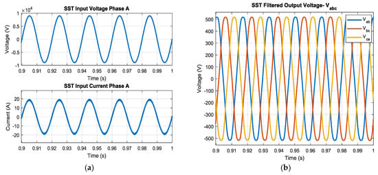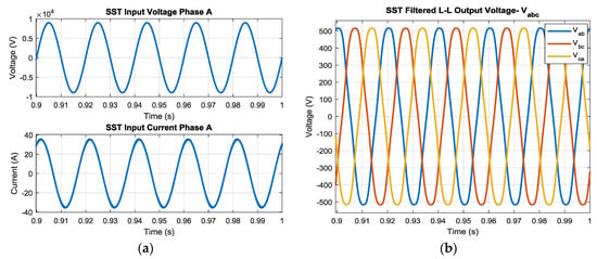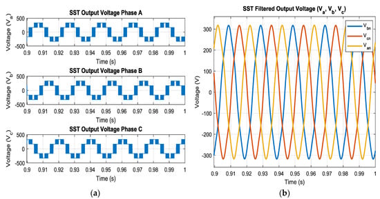 (a) SST-VSI output voltage without filter. (b) Filtered SST output voltage.