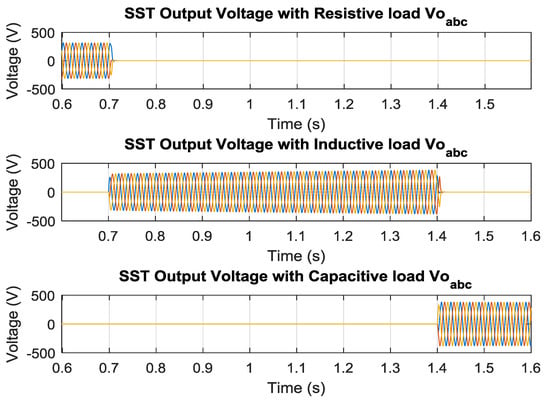 When SST generated 60 Hz voltage signal for the load, the same parameters were evaluated, as in the previous case, and are displayed in Figure 21. Similarly, a voltage signal of other frequencies can be generated using the proposed SST for the resistive as well as the inductive load.
