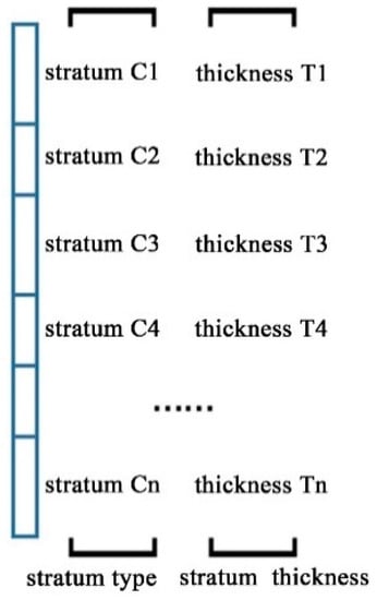 A sequence refers to a series of data of a system at a specific sampling interval. In reality, sequences are a very common form of data. For example, strata have a certain thickness, and a certain stratum may be distributed throughout the whole field or only locally (namely, the stratum division). Stratum information can be interpreted as a sequence. Therefore, the strata can be regarded as a vertically oriented spatial sequence, as shown in Figure 1. The simulation of a geostratigraphic series is based on the learning results of borehole data to predict the geostratigraphic series at any point in the study area, including the stratum type and thickness of each layer in the sequence.