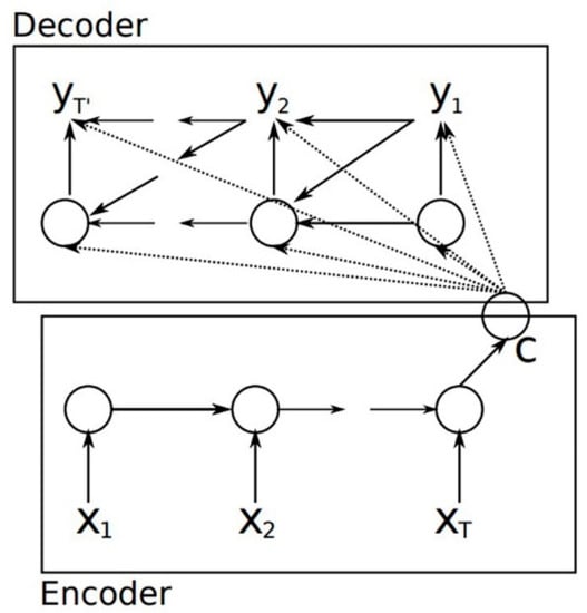 Sequence-to-sequence (or seq2seq) learning has been widely used in the processing of machine translation and speech recognition, also known as the encoder-decoder network. It maps sequences as input to output sequences through deep neural networks. The seq2seq model is shown in Figure 3. This process includes two steps, input encoding and output decoding and these two links are handled by the encoder and decoder, respectively. The encoder is responsible for converting a variable-length input series into a fixed-length vector. This fixed-length vector contains information about the input series. The encoder is responsible for decoding this fixed-length vector and generating a variable-length output series according to the information content the vector represents.