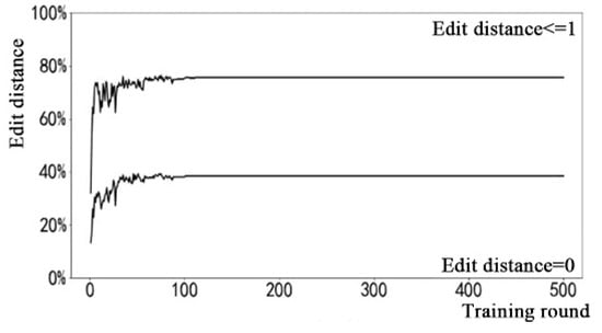 The edit distance is a standard that is used to measure the similarity of series. The edit distance represents the minimum number of edit operations required for one series to be converted into another series after insertion, deletion, and replacement. The smaller the edit distance between the two series, the more similar the two series are. Since the length of the series for edit distance alignment is different, the longer series has a notably higher similarity when editing two series with the same distance. To better describe the closeness of series, the following Equation (3) is used in the calculation of the similarity of series:
