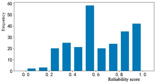 The calculation process of this algorithm consists of two parts, the type evaluation index and the layer thickness evaluation index. The reliability score is the average of these two indexes. The range of reliability scores calculated by this algorithm is [0,1], representing the matching degree between the evaluation object and the empirical cognition of the machine learning model. The higher the reliability score is, the closer the evaluation object and the model are in predicting the stratum distribution of this point.