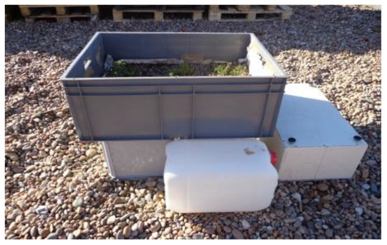 From the perspective of integrating green roofs with rainwater harvesting systems, previous research has been conducted by the authors and other researchers on a conventional extensive green roof system in Oporto city (Portugal) [35]. This study revealed low runoff coefficient values, but allowed the development of an expression to predict the monthly runoff coefficients for this type of conventional green roof. The extensive pilot system adopted (Figure 1 and Figure 2) followed the typical extensive green roof structure: geotextile membranes, a water holding capacity layer using expanded clay, and a 10 cm growing substrate composed of a mixture of expanded clay and organic matter. The pilot green roof was established with three different common aromatic plant species: Satureja montana, Thymus caespititius, and Thymus pseudolanuginosus.