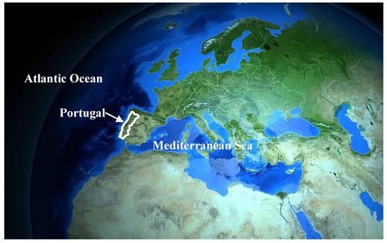 Location of Portugal close to the Atlantic Ocean and the Mediterranean Sea.