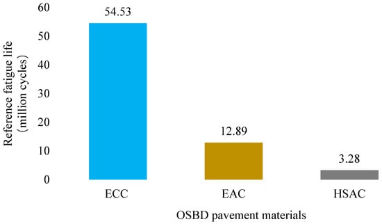 Reference fatigue lives of different OSBD pavement materials.