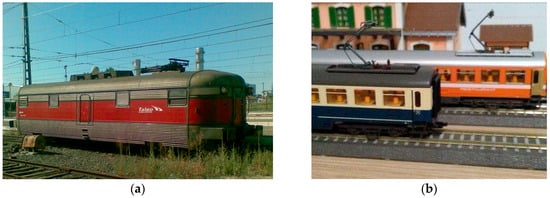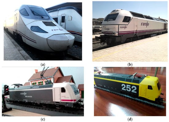 Locomotives and EMU used for simulation in the paper: (a) HDEMU series 730; (b) diesel-electric S-334 for passenger services; (c) electric series 253 for freight traffic; (d) electric series 252 for passenger and traffic duties.