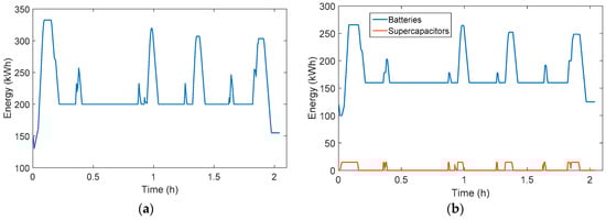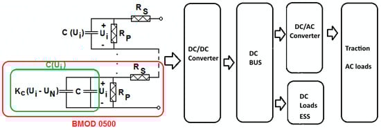 Some real applications of OESS have been studied in Reference []. Trams circulating in Lisbon and Nice have Ni-MH batteries that allow working in catenary free operation mode and contributing to reducing their emissions and visual impact, as well as increase energy efficiency. Lisbon trams use the Sitras HES system, developed by Siemens [], while Nice tram was developed by Alstom [].