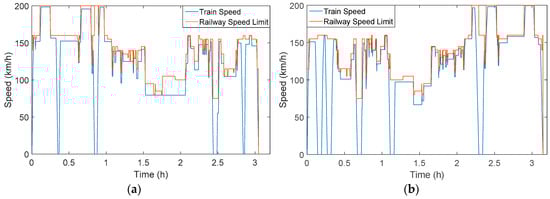Resistance forces are the sum of all forces acting on the train at a given time or place. Some of these forces change directly as the axle loading does: For example, journal friction, rolling resistance, or track resistance. Other forces vary with speed and are known as flange resistance. Finally, some forces vary with the square of the speed: Air and wind resistance. These resistance forces are examined in detail with different models [,,], but they are not the objective of this paper. A quadratic formula has been used for decades to approximate rail vehicles resistance: