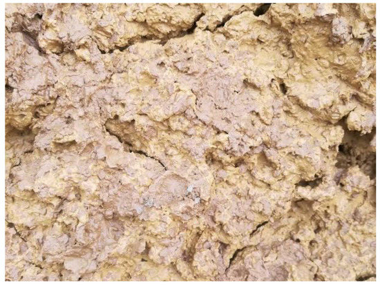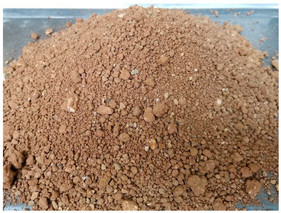 The soil used in the tests was Quaternary Holocene residual clay with a yellow-brown color (Figure 2). It was taken from a construction site in Southern China. Its basic physical parameters are shown in Table 2. To ensure uniformity, the soil was dried to a constant weight at 105 °C and then screened with a sieve with a diameter of 5 mm.