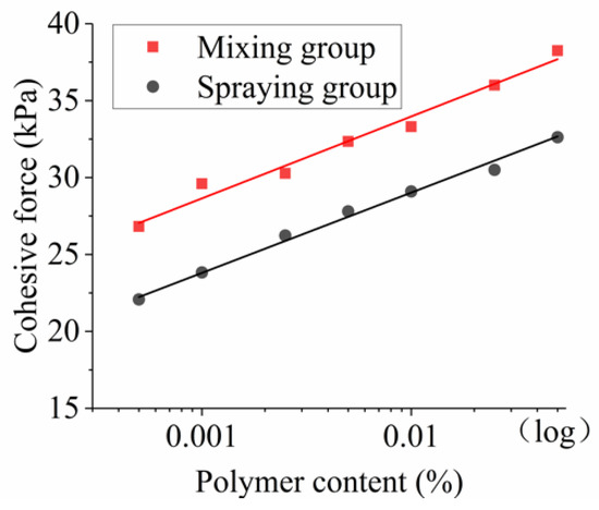 The relationship between the cohesive force and polymer content.