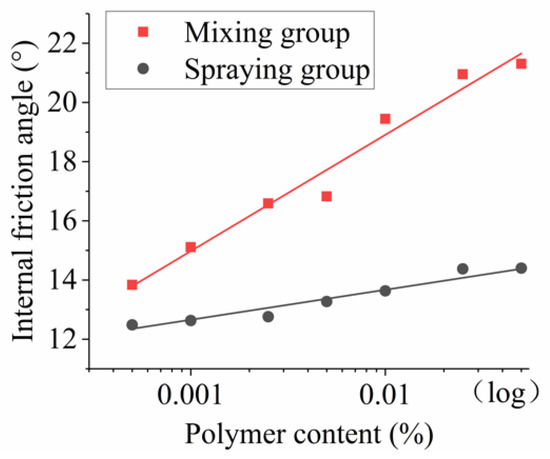 The relationship between the internal friction angle and polymer content.
