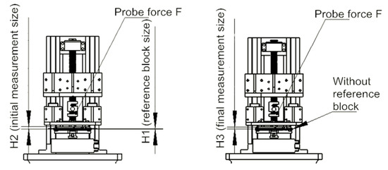 First, after placing the measurement reference block (H1) on the synchronizer cone, putting the synchronizer ring. Then move the probe down and the probe force is set to F at this time. After the measured value of H2 is displayed, move the probe up a certain distance to facilitate the removal of the synchronizer and the reference block. Next, move the probe down again to bring the force to F, at which point the measured value (H3) is obtained. The synchronizer ring backup gap can be calculated.