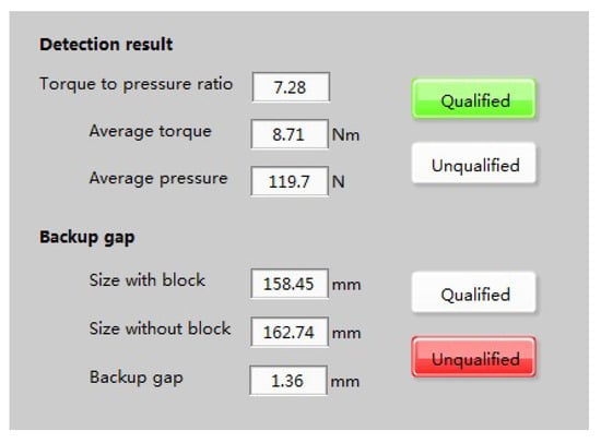 Low friction torque indicates poor matching quality, and a low backup gap indicates a high degree of wear. It can be seen from the figure that a workpiece will be judged to be qualified only when both two indicators are within the range of values. The method proposed in this paper has an accurate detection effect.