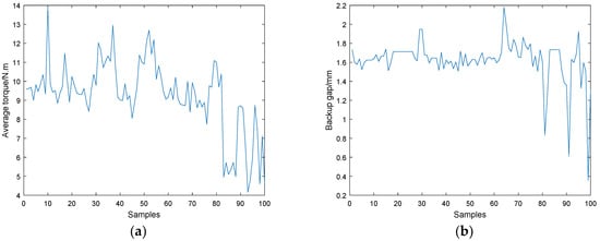 The measured average torque and backup gap of the 100 sets of workpieces are shown in (a) and (b) in Figure 13, respectively. In the figure, the first 80 sets are qualified, and the last 20 sets are unqualified.