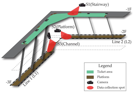 - Zhou, J.; Chen, H.; Yang, J.; Yan, J. Pedestrian evacuation time model for urban metro hubs based on multiple video sequences data. Math. Probl. Eng. 2014, 2014, 1–11. [Google Scholar] [CrossRef]