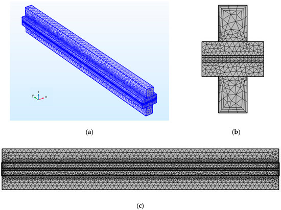 Multi-grid mesh for HT-PEMFC (a) isometric view, (b) right view, (c) front view.