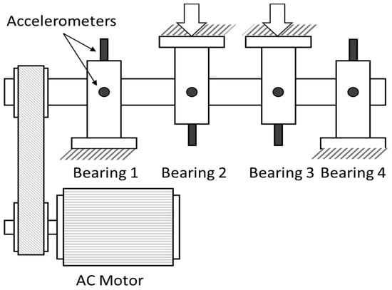 Bearing test rig and sensor placement []. Reproduced with permission from [], Elsevier, 2019.