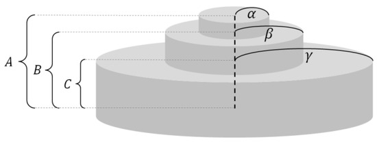 As shown in Figure 6, the pheromone amount of A, B, and C in radii , and at node are modeled using Equation (21).