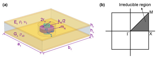 where (, ) is the position of the stth resonator and is the force applied on the sandwich plate by the stth resonator. According to the PWE method, the displacements of the LR sandwich plate can be written as