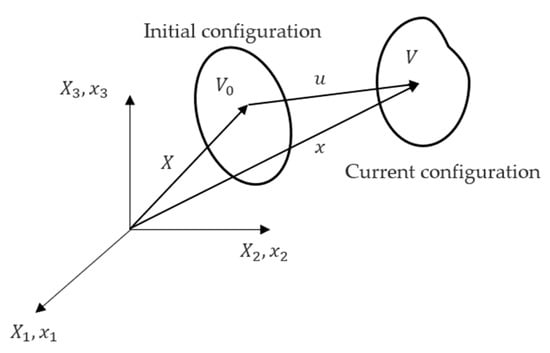The updated Lagrangian formulation is assumed to have the current configuration as the reference configuration. The initial configuration is the space occupied by an object at time s, while the current configuration is at a specific time, as seen in Figure 4.