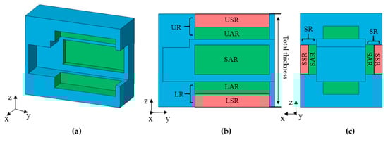 The structural shock-absorbing elasticity of air regions represented the relationship between space volume and internal pressure. When the air regions were depressed, the internal pressure increased because of the reduced space. To provide enough support for the BA receiver and also provide sufficient air region volume, the length and width of these air regions were defined by considering manufacturing feasibility at the same time. Moreover, it was also critical to have sufficient solid regions to absorb shocks. Thus, the thickness of the four air regions should be optimized to maintain a balance between the solid regions and the air regions. The thickness of the upper and lower air regions was along the z-axis, while the thickness of side air regions was along the x-axis. The thickness ratio of each region was equal to its air region’s thickness over its region’s thickness, which was the sum of the thickness of its air region and solid region.