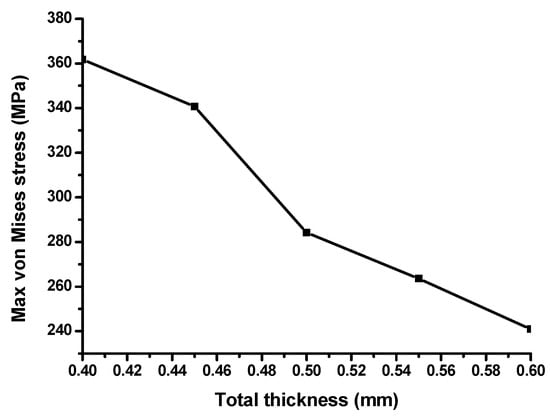 The change tendency of the maximum von Mises stress with an increase of total thickness.