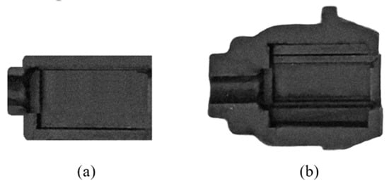 The BA receiver earphone sample included the ear tip, the upper (with screen) and lower cases, and the BA receiver with the gasket, as shown in Figure 19. For better observation of the internal structure of the two kinds of gaskets, cross-sectional views of each are shown in Figure 20.