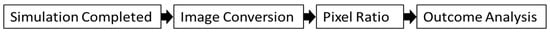 To calculate the pixel ratio of the simulation image, a raw volume ratio was calculated for both the simulations and experiments. The volume ratios (RV) for the simulations and experiments were determined based on Equation (2), whereby Vp and Vs respectively denote the volume of the part and cross-section in a single image. Fixed average volume ratios of simulations and experiments are shown in Equation (3), whereby RSV, REV and n, respectively denote the simulation volume ratios, experiment volume ratios and numbers of utilized images.