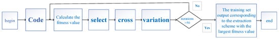 Selection: The fitness value of each extraction scheme is calculated according to the fitness function. The extraction scheme with the largest fitness value is copied times, and they will be used as schemes in the next generation population (it guarantees that the extraction scheme with high fitness can be retained). Then, using the roulette selection method, the remaining extraction schemes in the next generation population is generated.