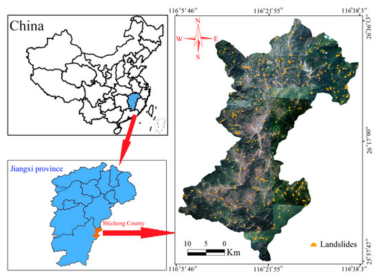 - Chen, W.; Peng, J.; Hong, H.; Shahabi, H.; Pradhan, B.; Liu, J.; Zhu, A.X.; Pei, X.; Duan, Z. Landslide susceptibility modelling using GIS-based machine learning techniques for Chongren County, Jiangxi province, China. Sci. Total Environ. 2018, 626, 230. [Google Scholar] [CrossRef] [PubMed]