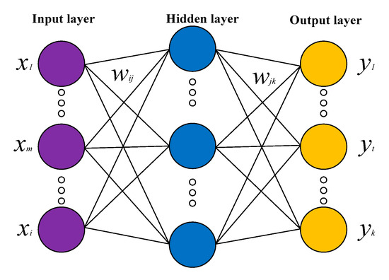 The MLP model is composed of input, hidden, and output layers, all of which are composed of similar neurons (Figure 4). The connections between the input and hidden layers and between the hidden and output layers are all processed by the weight values. By training and testing these weight values, neural networks form an orderly and stable structure with decision-making ability. Since an MLP with a single hidden layer can approximate a nonlinear system with arbitrary accuracy, this paper mainly studied the single-hidden-layer MLP model [60]. For MLP model with multi-input variables and multi-output variables, the number of neurons in input layer , hidden layer and output layer is respectively set as , and , so that the inputs and outputs of hidden layer neurons are: