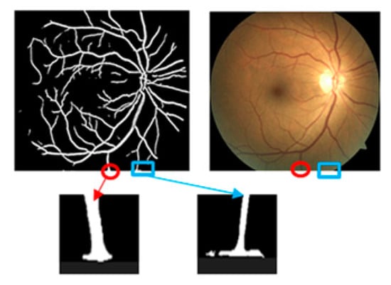 Retinopathy is a symptom of many common diseases, such as diabetes, arteriosclerosis, and leukemia [1,2,3]. These diseases are known to easily spread to blood vessels in the retina [4]. Therefore, many patients with these afflictions are often screened and diagnosed by analyzing retinal fundus images. These retinal arteries and veins can also be analyzed to determine whether the patient has arteriosclerosis. There are several features, e.g., bleeding points and exudates, that can be used to determine diabetic retinopathy. Patients can often judge glaucoma via an optic disc detection method. Therefore, to accurately diagnose these diseases early, a quantitative method needs to be developed. In the past, analysis of the various parts of the retina played a decisive role in disease detection and prevention. Therefore, retinal image segmentation can provide doctors and experts with a highly efficient retinal disease diagnosis method that can also prevent disease. Deep learning-based image segmentation is the embodiment of artificial intelligence.