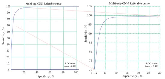 The receiver operating characteristic (ROC) curve of our multi-seg-CNN.