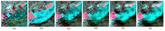 According to Equations (10) and (11), the final changes of the Landsat images between and can be obtained from Equation (19):