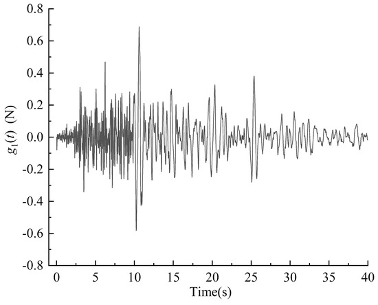 In this example, acceleration was the ground motion recorded at a site in Whittier Narrows, California during the Whittier earthquake of 1 October 1987. The force g1(t) is shown in Figure 3.