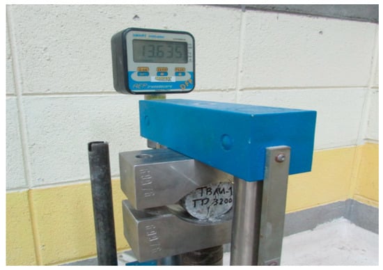 An investigation of about 13 km was conducted in the PSRWT tunnel and a database with 209 datasets was prepared. Rock type in the investigated areas was granite covering three weathering zones, i.e., fresh, slightly weathered, and moderately weathered. According to International Society of Rock Mechanics (ISRM) [86], a typical rock weathering profile is composed of six weathering grades namely fresh, slightly weathered, moderately weathered, highly weathered, completely weathered, and residual soil. This classification is mainly based on discoloration and decomposition of the rock material. Based on tunnel mapping 34,740 m of PSRWT tunnel which was excavated by TBMs, a total of 12,649 m comprising 5443 m in fresh, 5530 m in slightly weathered, and 1676 m in moderately weathered zones, was observed. In this study, in terms of rock mass properties, many points in three TBMs were investigated and several rock mass properties, such as type of rock, strength, degree of weathering, joint condition (e.g., spacing of discontinuities, alteration, degree of roughness, infilling material), and groundwater condition, were quantified and database established. Furthermore, machine characteristics, such as TF, RPM, PR, AR, boring energy, stroke speed, and cutterhead torque, were recorded by TBMs. For rock material evaluation, more than 100 block samples were collected from the face of PSRWT tunnel project and after transferring to the laboratory, several tests, e.g., density, BTS, point load strength, Schmidt hammer, p-wave velocity, and UCS were carried out based on ISRM [86]. According to several authors [54,55,87,88,89,90,91,92], the most known geomechanical tests used to establish the quality state of the rock masses are RQD, Schmidt hammer, UCS, p-wave velocity, etc. A failed sample under Brazilian test conducted in the laboratory is shown in Figure 2. Besides, a conducted UCS test on a sample before and after failure is shown in Figure 3.