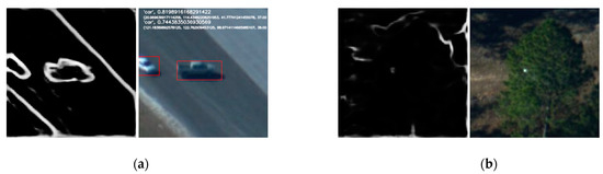 In Figure 8a, which was under deformation, the target vehicle in the center of image and its contour were simultaneously detected, while in Figure 8b, which was under occlusion, neither the more severe shielded vehicle nor its contour were detectable. In order to improve the robustness of our system and avoid unknown conditions that may lead to false tracking, we preserved the template in the first frame, which was manually selected and had the highest confidence. This highest confidence template was utilized as a backup template to match with the search region during each template update except for the first time.
