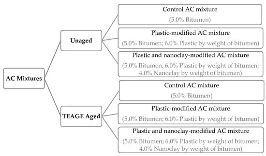 Tested asphalt concrete (AC) mixtures.