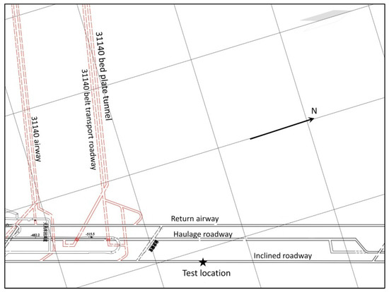 Roadways distribution of test location in PDS No. 11 coal mine.
