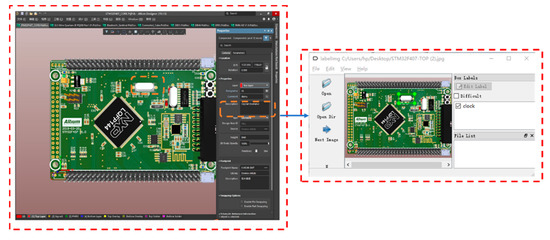 As mentioned earlier, there are many kinds of electronic components and various shapes. It is almost impossible to collect real photos of PCBs containing most electronic components to build a training dataset. At the same time, even experienced engineers are unlikely to identify all device categories for labeling. For these reasons, we used the Altium Designer which provided Octo part, a component search engine that accesses hundreds of distributors, thousands of manufacturers and millions of electronic components. This enables us to take advantage of prototypes in the prototype common parts library to generate PCB virtual images with electronic components. These virtual images are visually almost identical to real boards. The synthesized data of the virtual image can directly query the parts name and category, and the deep learning engineer, who has no professional electrical knowledge, can also directly name the label according to the query result. The combination of synthetic data and real data to form a training data set can reduce the cost of data collection and improve the generalization of the training model [24]. The display and query process of the PCB virtual image in the Altium Designer is shown in Figure 4.