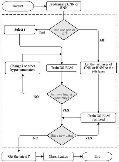 - The proposed fnnmOS-ELM fully exploits the feature representation of CNNs and RNNs with different datasets and makes use of the excellent classification characteristics of OS-ELM.