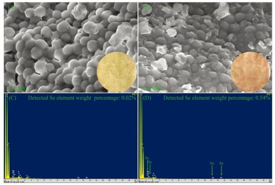 Scanning electron microscopy (SEM) and energy-dispersive spectrometry (EDS) of brewing industrial DB-yeast and Se-enriched DB-yeast were carried out using a scanning electron microscope EVO 18 (Zeiss, Oberkochen, Germany).