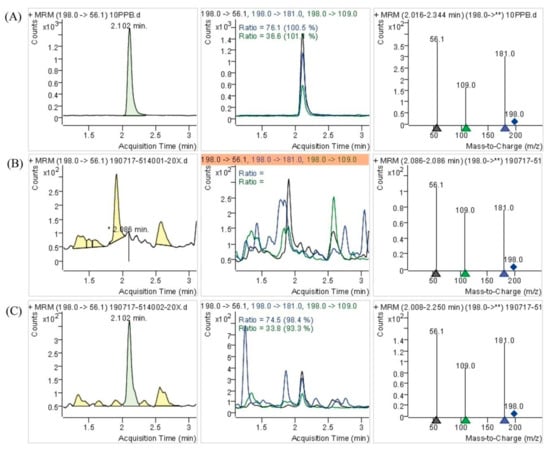 Determination of l-selenomethionine (Se-Met) of DB-yeast and Se-enriched DB-yeast by LC–MS. (A) Se-Met standard substance (10 mg/L). (B) DB-yeast. (C) Se-enriched DB-yeast.