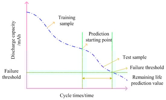 Battery capacity declines over an increasing number of charging cycles [19]. The physical model and data-driven model are used to predict the life of lithium-ion batteries [20]. The main methods of physical model prediction methods include the degradation mechanism model and equivalent circuit model [21,22]. The data-driven methods mainly include support vector machine (SVM), artificial neural networks (ANNs) and Gaussian process regression [23,24,25].
