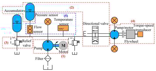 Based on the established theoretical model of the regenerative braking system, an experimental bench was constructed, and its schematic diagram was shown in Figure 8. Its operating principle was as follows, which corresponded to the marks Figure 8.