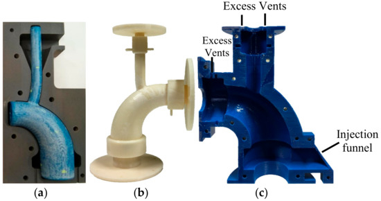 PIV analysis has been established as the leading methodology in experimental fluids [54]. However, the methodology has certain limitations in cases when fluid–solid boundary interaction must be modelled. In particular, most applications of PIV require solid boundary materials to be optically transparent and have a refractive index that matches the working fluid. Furthermore, when specific wall compliance is required, the wall thickness of the solid boundary must be precisely achieved. This research has shown the limitations of established moulding techniques when complex shapes are required. The research also shows the potential benefit of using rigid supports and fully 3D printed moulds in the generation of phantom moulds.